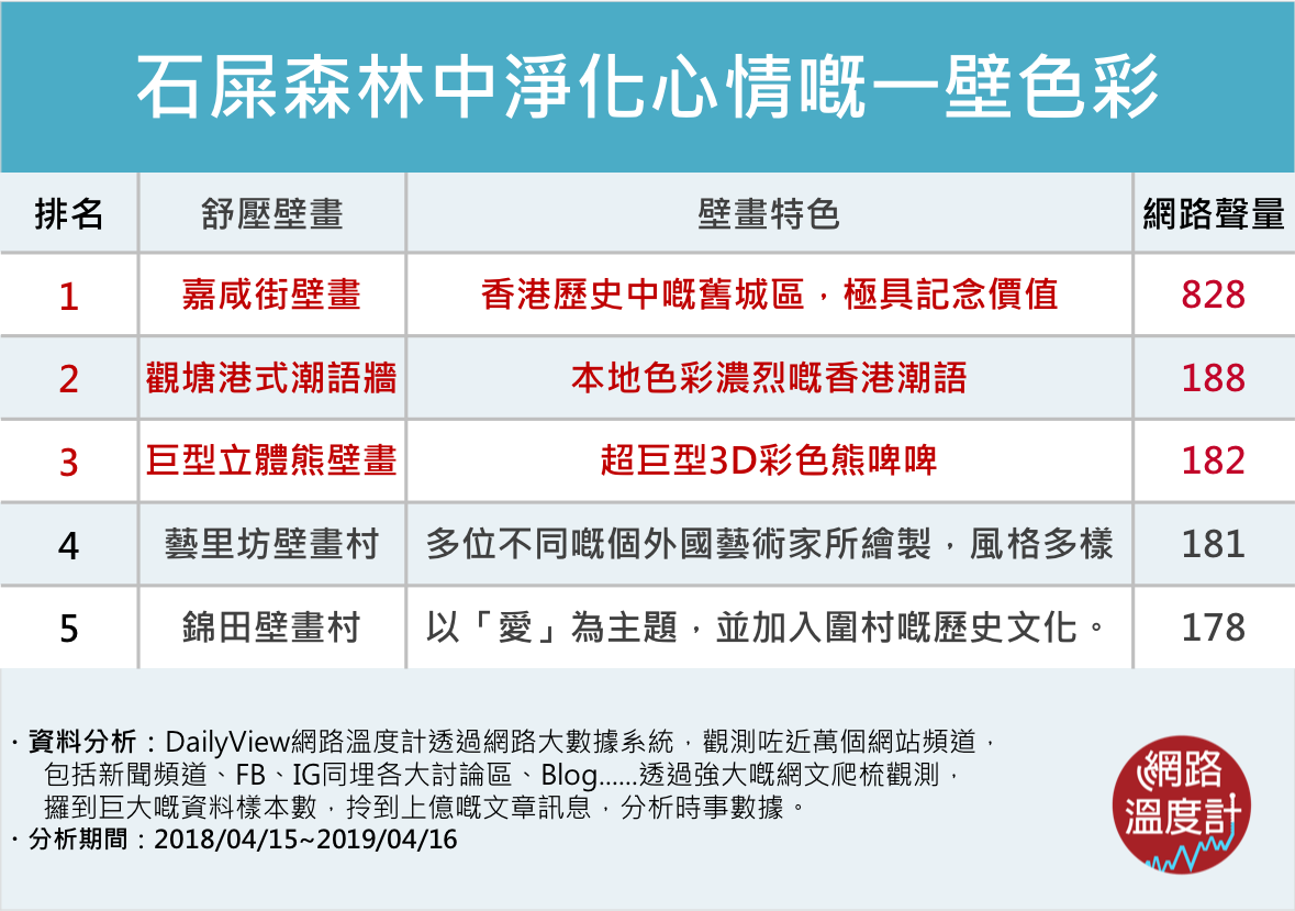 網路大數據系統觀測港澳地區上萬個網站頻道,包括新聞頻道、Facebook、Instagram、Twitter及各大討論區、部落格等,針對討論『打卡建築/壁畫街 』相關文本進行分析,並根據網友就該議題之討論,作為本分析依據。