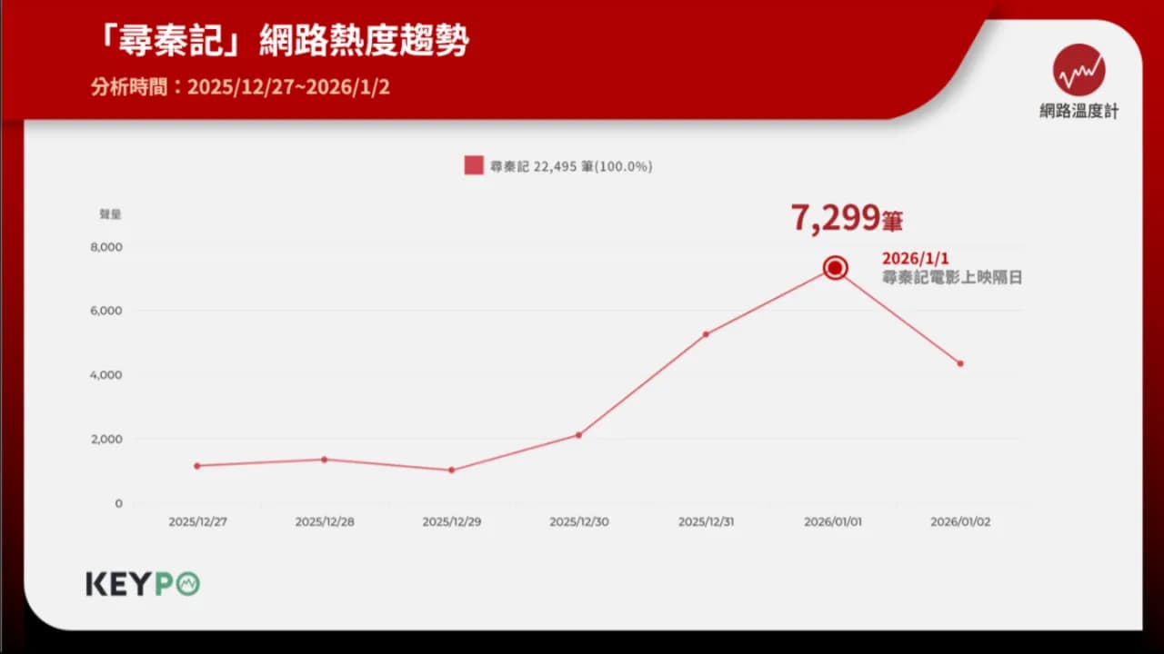 《香港網路溫度計 DailyView HK》透過輿情分析軟體《KEYPO大數據關鍵引擎》觀察,尋秦記 在 2025 年 12 月 27 日至 2026 年 1 月 2 日期間,網路聲量累積達到 22,495 筆。聲量高峰出現在尋秦記電影上映隔日,單日聲量達到 7,299 筆,跨年場引爆觀影熱潮,突破香港電影首日開畫紀錄。